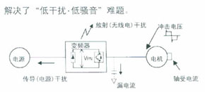 3、世界上首次把3电平控制方式运用到400V级通用变频器,使变频器输出电压更接近正弦波。彻底解决了冲击电压造成的电机绝缘损伤、轴电压造成的电机主轴电腐蚀问题。因此即使无浪涌抑制滤波器,通过电机和已有电机也能安心使用变频驱动器。大幅降低了漏电流噪音。(比原来减一半)